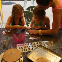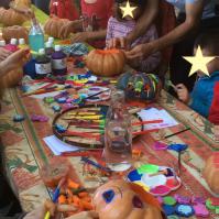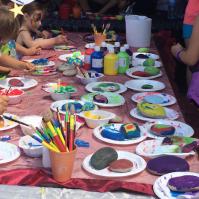 Deux ateliers l'un pour décorer des galets suivant l'inspiration des enfants, l'autre pour réaliser des peintures sur papier au gré d'un support rotatif…