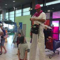 En déambulation simple, en sculpteur de ballons en échasses.